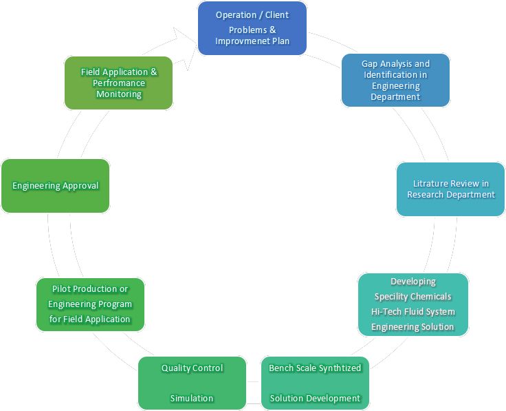 We believe that research and development is a key element to continuous improvement. Our R&D department is interlinked from operations on the field sites to our engineering to develop tailor made specialty chemicals which result in optimized formulations. The conclusion has been the innovation of a number of wide range Specialty Hi-Tech Chemicals, Fluid Systems and Waste Management Solutions.